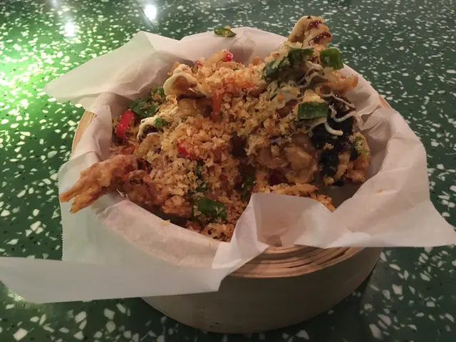 🧧農曆新年前夕好多嘢搞,同呀媽大掃除完就出觀塘,去咗活化嘅工廈Wave行年宵,順便食埋晚飯。行下行下去咗2/F嘅登堂,成層都係呢間餐廳,真係超大!最誇張嘅係坐滿哂人,勁高人氣。餐廳主要食西餐,但都有啲fusion嘢。另外,仲有酒飲,係一間酒吧餐廳🍸。餐廳仲有一個位係可以入去自己揀酒添。🦀避風塘軟殼蟹($88),呢個用點心籠上,好吸睛。軟殼蟹好正,有兩大隻,加上有大量避風塘粒,好香口。🐷燒西班牙黑毛豬肋骨($138/half ribs),估唔到半份份量都咁多😍,Ribs嘅BBQ煙燻醬好惹味,而且仲有薯條、烤粟米🌽同捲心菜沙律。🦑鮮魷魚意大利粉($128),除咗魷魚外,仲有煙肉同嫩菠菜。汁就係芝士忌廉汁,幾Creamy,意粉份量好多。🍅乾蕃茄香辣上湯龍躉意大利飯($198),呢個飯有啲重口味,同埋都幾辣🌶,要有啲心理準備。個飯幾搞笑有用玉子豆腐同絲瓜做餸。飲品方面,我要咗🍵冷泡烏龍茶蜜糖牛油果奶蓋($45),我expect牛油味會濃啲,但其實無乜,而杯嘢亦都唔甜。我媽就要咗Pine’Art’ple($68),呢杯正好多😋,係🍋檸檬汁同🍍菠蘿汁嘅mix,兩樣味都好出,唔錯唔錯。總括嚟講,呢餐食到好飽飽,差啲唔食得哂添。價錢唔平,不過勝在食物多,環境又幾好👍。…Read More