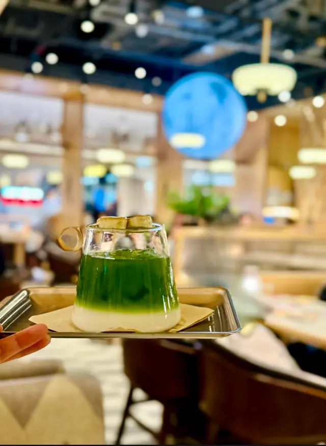 奶綠賣相蠻漂亮的,綠白分明的顏色分層,還放了一串焦糖香蕉作點綴