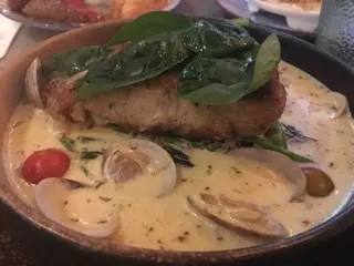 三五成群遊玩完南生圍,晚上去了朋友家附近的餐廳晚餐,環境幾寬敞舒適的,播着抒情的愛情歌曲,感覺甚有氣氛。招牌烤雞沙律 $85沙律菜以酸甜黑醋攪拌,爽脆清新,小編覺得個烤雞煮得幾好,微微咸而完全不韌。意大利香草焗紐西蘭羊架 $128羊架帶有好香的香草味,軟滑不韌,而且帶有少少羊羶才味美。新奧良雞翼(4隻) $35雞翼略普通,純碎蕃茄的酸味。白酒煮藍青口 $58青口浸在酒裡,有啖啖的酒香,如果青口肉略大更好。香煎鰽魚柳配溫室菠菜煮蜆 $118賣相很好看,色彩繽紛的,鰽魚柳幾鮮甜,再加上與蜆的互相配合,食味更鮮。朱古力心太軟配雪糕 $48朱古力心太軟似乎焗得耐了,偏硬了少少,流心如果多點會更好。吉士醬燴梨 $45小編覺得呢個甜品幾有心思,梨子批了皮,浸白酒雪凍,伴吉士醬食,清甜又多添細滑口感。平時都少去天水圍,呢次郊遊活動,巧合地讓小編踏足天水圍的餐廳,食物、服務和環境都不錯,有一番驚喜。…Read More
