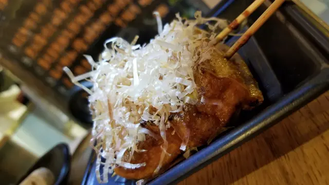 鹽燒先雞皮有別於其他食店的燒雞皮,完全沒有多餘油脂,每塊都超香脆可口, 問店員才知道原來是老闆會印走所有油,才串起雞皮去燒,十分認真!令雞皮原本的味道完全呈現出來!