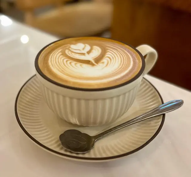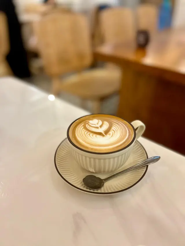 假日約了友人去旺角行街食飯, 出地鐵時經過快富街, 見到 雙魚座咖啡館, 店名好特別, 大間又吸引.從玻璃窗往內看, 格局有規模. 門面佈置有格調, 我們決定在此吃個晚餐. 看看餐牌. 主打多國菜, 食品種類很多. 入門有大型開放式水吧, 座位多, 窗邊座位還可看街景.朋友點了 All Day Dining, 美式 BBQ 手撕豚肉, 升級套餐, 只加 $25 配鮮奶咖啡. 咖啡氣味香醇, 拉花做得非常精緻. 美式 BBQ 手撕豚肉, 煎蛋漢堡, 配海鹽薯角伴田園沙律, 好大碟.漢堡包有烘過, 外層鬆脆而內柔軟, BBQ 手撕豚肉 肉質嫩滑, 肉汁調味極濃郁, 不油膩. 配料有生菜, 鮮甜蕃茄, 沙律醬, 煎蛋, 舖得滿滿在包內, 好豐富. 朋友提議切開一半一齊食.