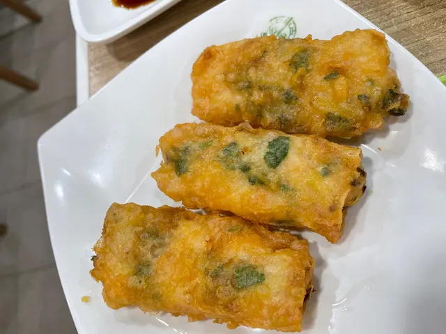 <陳皮牛肉球 $23>👍🏻👍🏻清香牛肉球,質感軟而穩固。少少芫荽和陳皮,再自己點少少喼汁,永不會膩的經典味道!😋:(<鮮蝦腐皮卷 $36>平時街開的腐皮卷都是煎的,但這裏的是炸的!!!所以幾時都要記得睇埋英文description,“Deep fried bean curd roll with shrimp & chive”「油炸韭菜蝦腐皮卷」所以一上枱時我是有丁點失望的。內餡是可以的,還有炒少胡蔔葡絲。但炸粉漿的原故,幾乎吃不出腐皮🥲:(<鮮肉韭菜蝦煎餅 $28>有春卷皮包著的剩餘材料,另一個形態的「韭菜蝦春卷」,無特色。此外,火喉控制失敗,炸得燶左。是脆、是未有燶到苦,但較油。