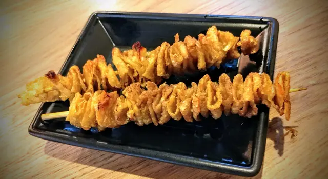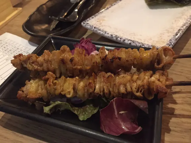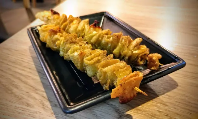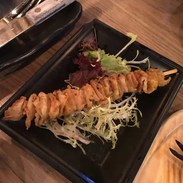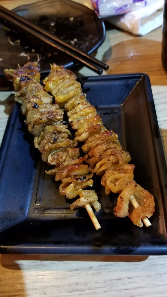 鹽燒先雞皮有別於其他食店的燒雞皮,完全沒有多餘油脂,每塊都超香脆可口, 問店員才知道原來是老闆會印走所有油,才串起雞皮去燒,十分認真!令雞皮原本的味道完全呈現出來!