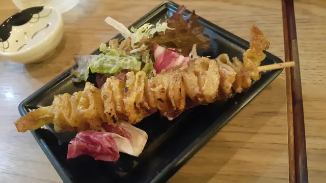 磯燒雞泡魚干,基本上係必點之佐酒小食,魚干燒得十分香口但又不會太乾和太’銀’,燒汁入味不需要沾沙律醬, 調味已經足夠好吃。