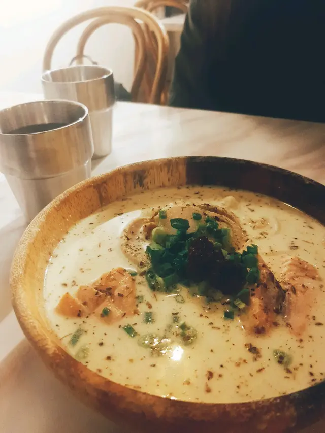 今日運動前醫飽肚仔先,去左位於銅鑼灣既八沢。餐廳唔算大,不過坐得幾闊落。餐廳將黑松露忌廉海鮮鳥冬既大相掛係牆上,所以女友叫左呢個招牌菜。同之前食既忌廉烏冬唔同,係忌廉湯並唔係忌廉汁,不過烏冬掛湯能力高,所以食烏冬都感覺到creamy既一面。黑松露既份量毫不嗇惜,差唔多有一大羹。另外海鮮包括三文魚扒同帶子。我叫咗黑蒜炙燒激濃黑豚肉拉麵。湯底好濃郁,充滿蒜味。黑豚肉燒到微焦,薄薄一片夠香口。溏心蛋放係中間夠突出,味道亦出色。飲品方面,我叫左棉花糖凍朱古力,顏色相當七彩繽紛,甜度適中。食完充滿精神去做運動!…Read More
