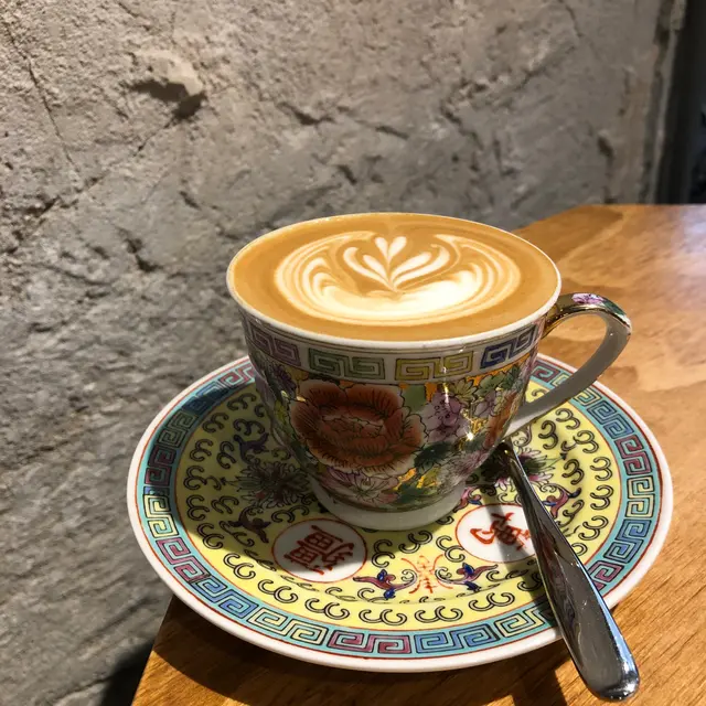🐶我哋喺梭椏道 Halfway coffee Outdoor坐😋Walk到半路 就嚟杯咖啡~𡃁𡃁 Vintage咖啡杯 ☕️Hoji都好想飲呢🤤Pat 【Flat White】$38除咗咖啡杯好𡃁,Flat White都係推薦👍🏻唔飲黑咖啡,可以試下😋…Read More