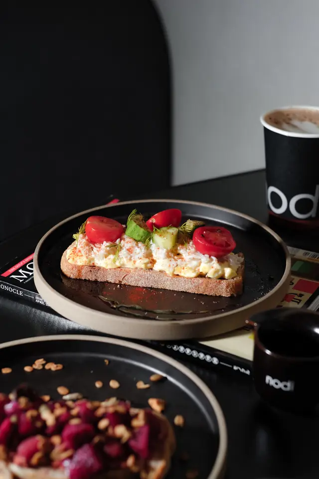 小店裝潢設計簡約爽利,黑白色系𥚃,帶點大地色調。適合慢下來品嚐輕食和咖啡的一間小店。lump crab toast ($68)有蟹肉、碎蛋沙律、青瓜和車厘茄,整體感覺清新的一款吐司,沙律口感細滑濕潤與青瓜粒和車厘茄味道匹布,而蟹肉舖滿在兩款食材之間,清新之餘又帶有蟹肉特有的咸香。raspberry and granola toast ($68)紅桑子配上火龍果、麥片和花生醬,酸甜程度清新開胃,配合花生醬和麥片,為味道和口感帶來更豐富的層次。chai latte (small, $40)香料味道相當突出,口感奶滑柔順,茶和奶的味道比例是6:4。咖啡以外的一個好選擇。…Read More