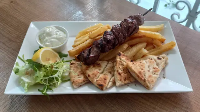 👧🏻😋👅🍽✨Feel Greek 🌬-🇬🇷 蘇豪附近平日1200-1430供應既lunch set $110起好抵, 包湯/沙律, 希臘主菜, 甜品, 飲品🇬🇷 近大館伊利近街轉角位, lunch time好熱鬧坐滿晒-▪️Soup / Salad🍲 Daily soup係雜菜湯, 蔬菜粒煮到好腍, 成個湯透徹清甜🥗 Mixed Salad 滿滿一碗沙律菜, 落左勁多產自希臘既feta cheese, 個醋汁清清地唔搶食材鮮味▫️Main🥙 Pita Gyro $120 揀左豬肉, 鬆軟既pita wrap包住睇落似層層分明豬腩肉, 但加左紫洋蔥同番茄多汁又清新, 食落唔油🧆 Souvlaki $150 揀左牛肉, 肉串望落冇咩特別, 但食落係好唔同, 大粒厚肉但好軟滑, 調味得宜, 突出到牛肉鮮甜, 再配pita bread食都係冇得輸▪️Dessert & Drink🍰 是日甜品係香蕉蛋糕, 用真香蕉好香甜; 手切每件唔同shape, 扁身果件邊位更香脆, 高身果件較鬆軟, 兩件都好好食!!☕️ 餐飲都係包house coffee / tea, base好香係幾唔錯, 另可upgrade特飲…Read More