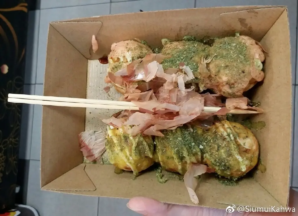 「蜜糖芥末口味+明太子口味」的「章魚燒小丸子」