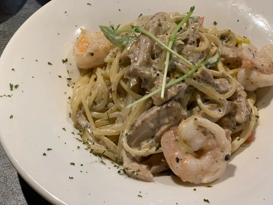 松露忌廉雞肉大蝦意粉