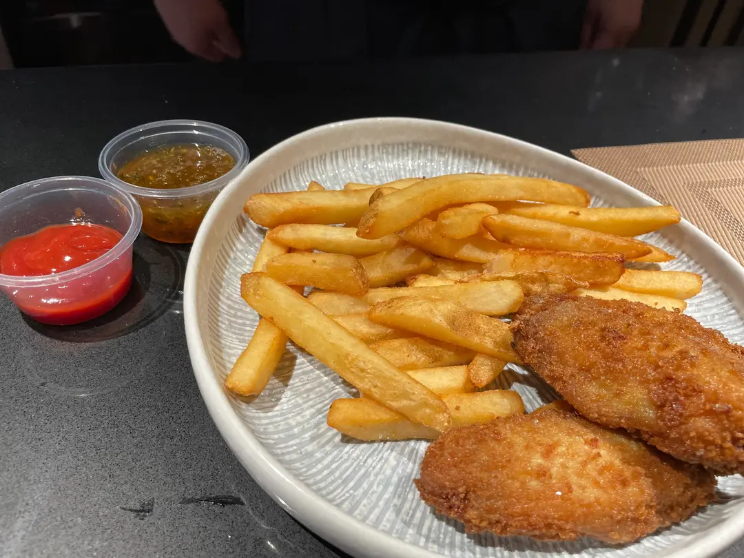 香辣焦糖脆雞翼,炸薯條