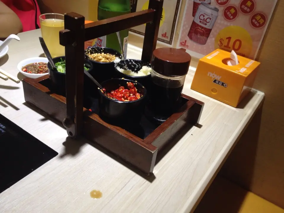 一坐下就拿來醬料