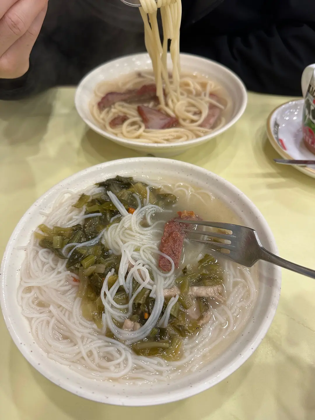 正常的雪菜肉絲米和叉燒意粉
