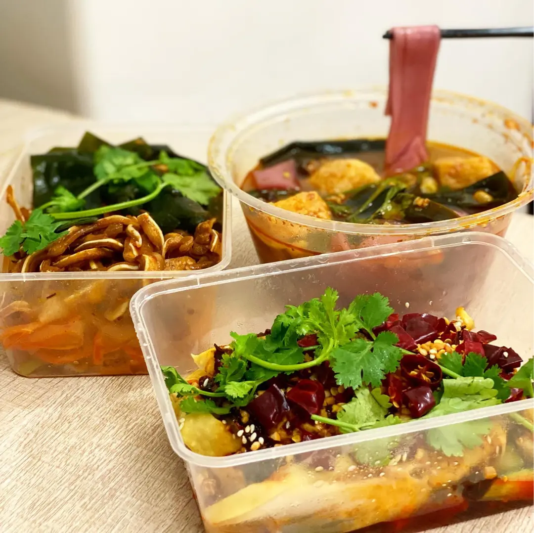 辣媽燙 麻辣湯底紫薯粉配豆卜加海帶
