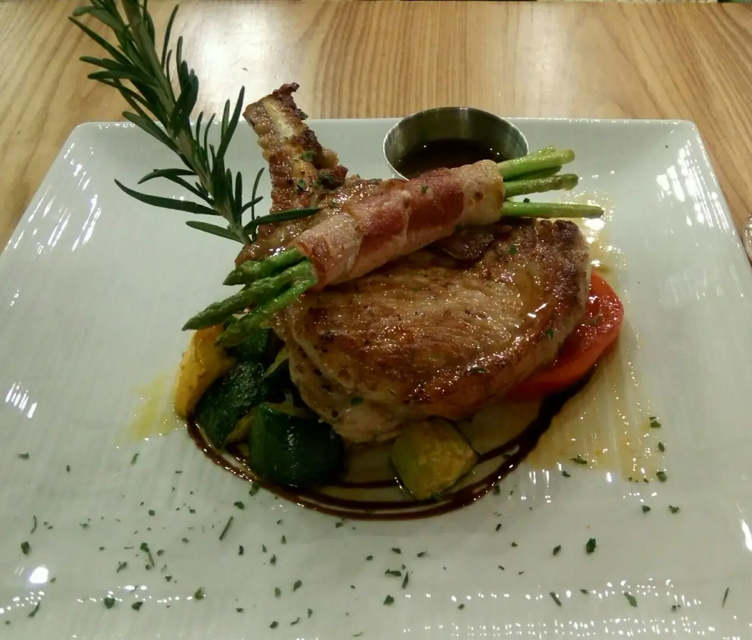 香煎西班牙豬鞍架配煙肉露荀卷