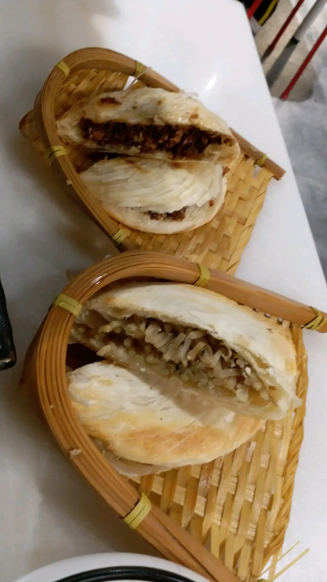 肉夾饃(上),土豆夾饃(下)
