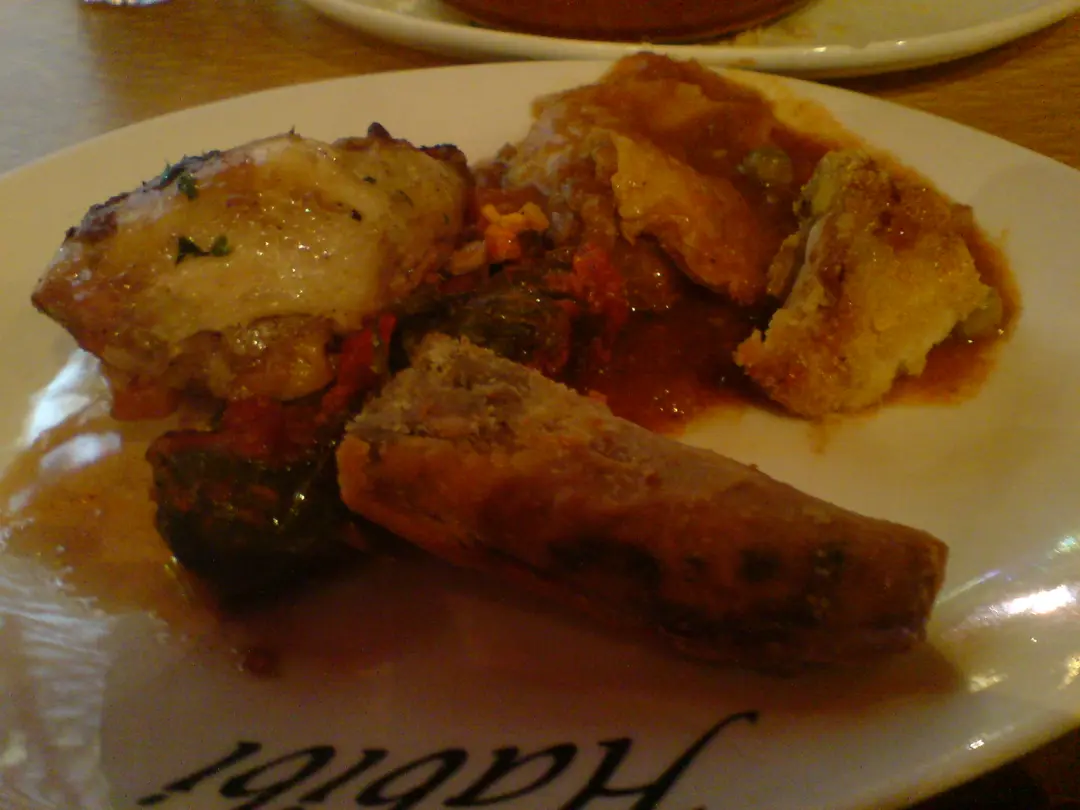 春卷,右上係魚,左上係雞