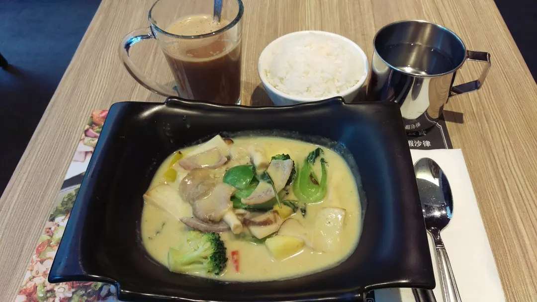 青咖哩野菌雜菜配白飯,配咖啡