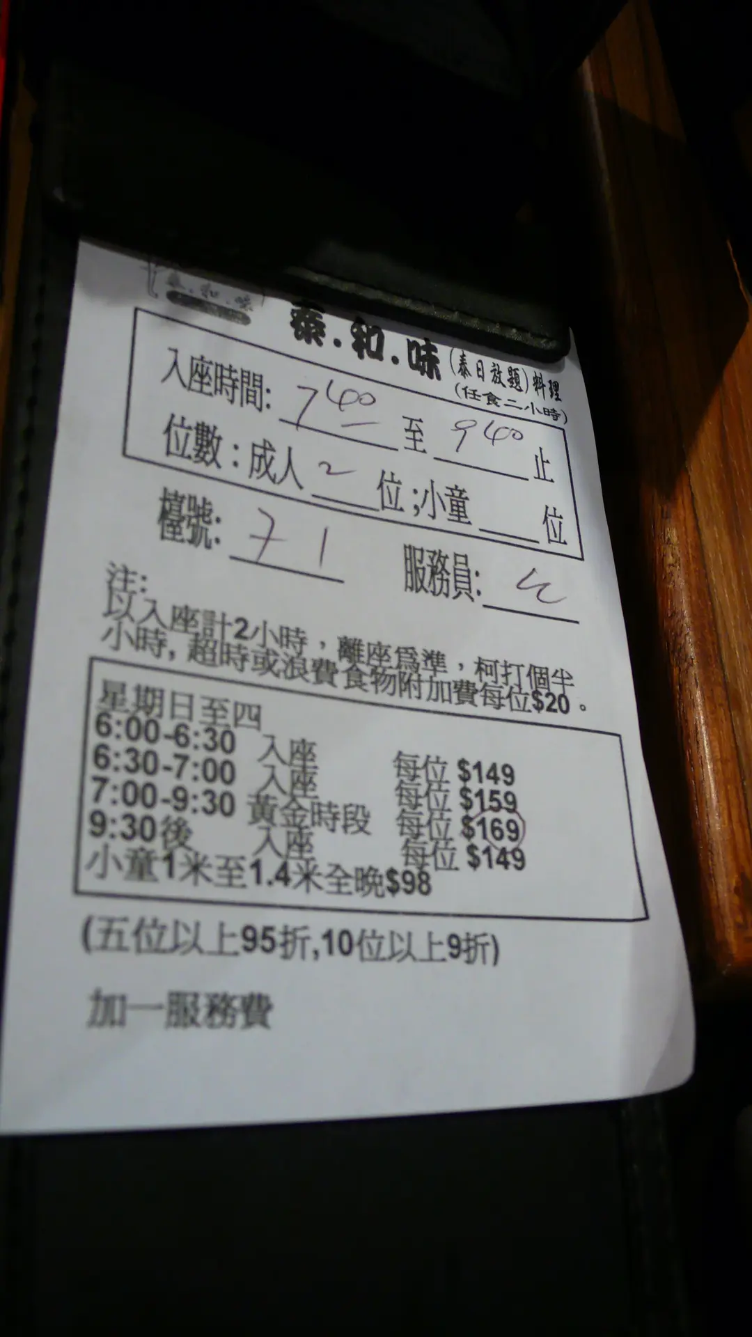 是日收費, 限食2小時