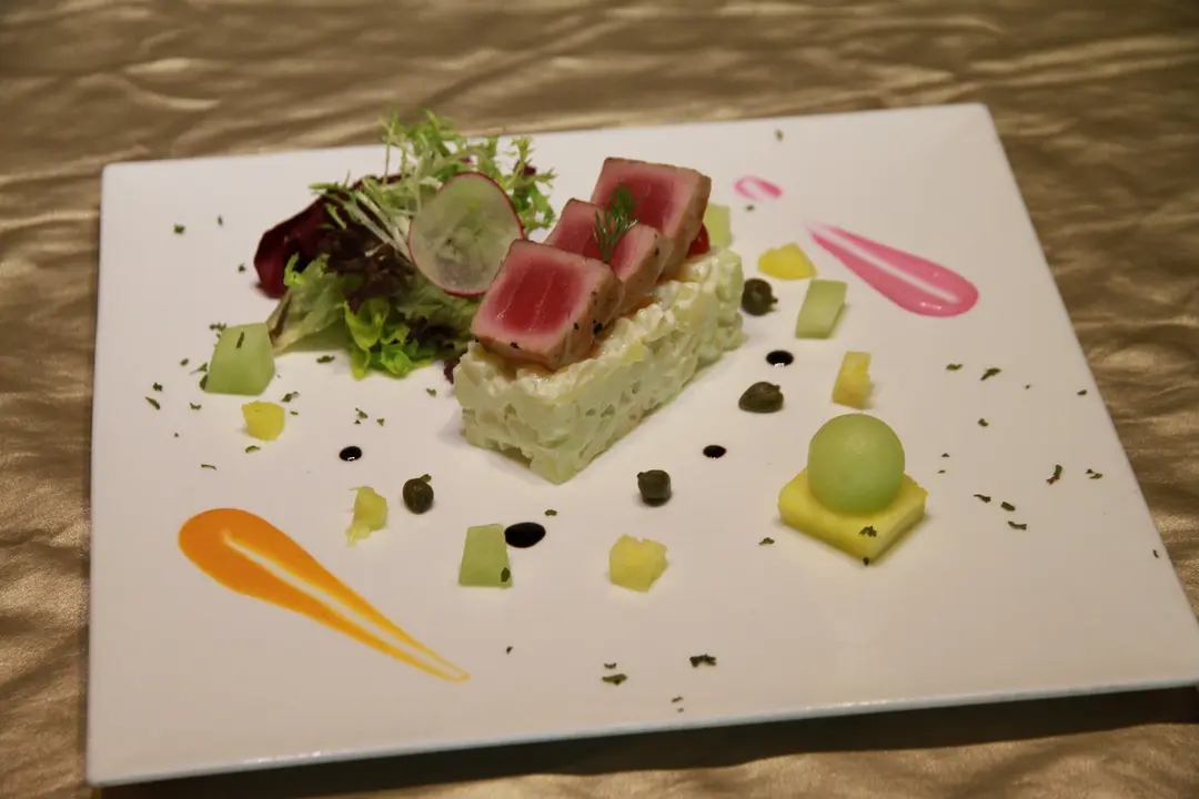 火炙鮮吞拿魚拼青萍果及西芹華都夫沙律