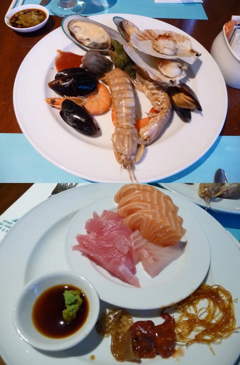 正, 三文魚及凍蝦;差, 螺、瀨尿蝦、 青口、扇貝