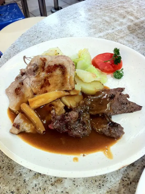 洋蔥豬扒拼牛扒配薯仔