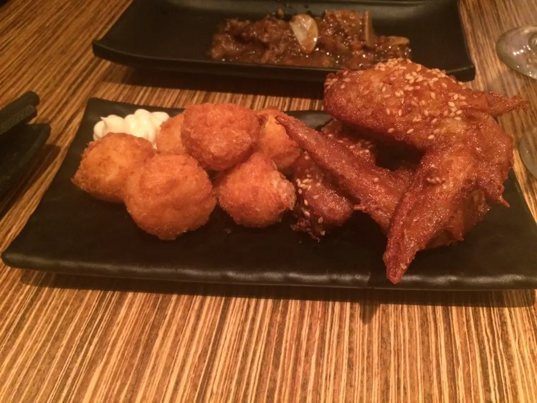 <芝麻雞翼 3隻 $48> <芝士蝦球 6粒 $38>