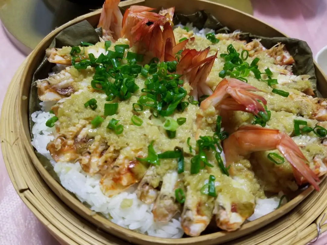 蒜蓉開邊蝦荷葉飯
