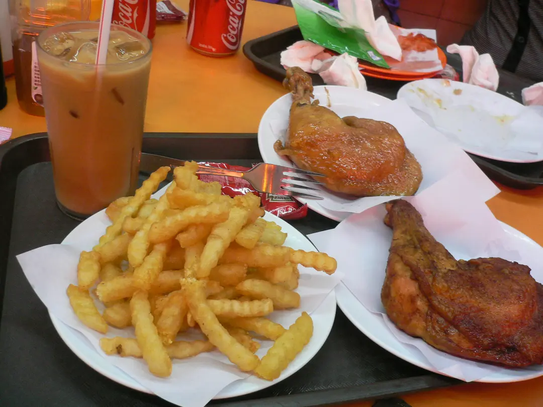 炸肶油肶各一,炸薯條一碟,凍奶茶一杯。。。。