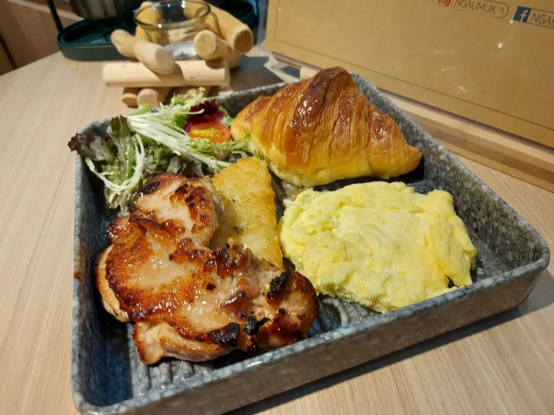 雞扒迷你牛油牛角包 & 3.6 牛乳炒蛋、薯餅