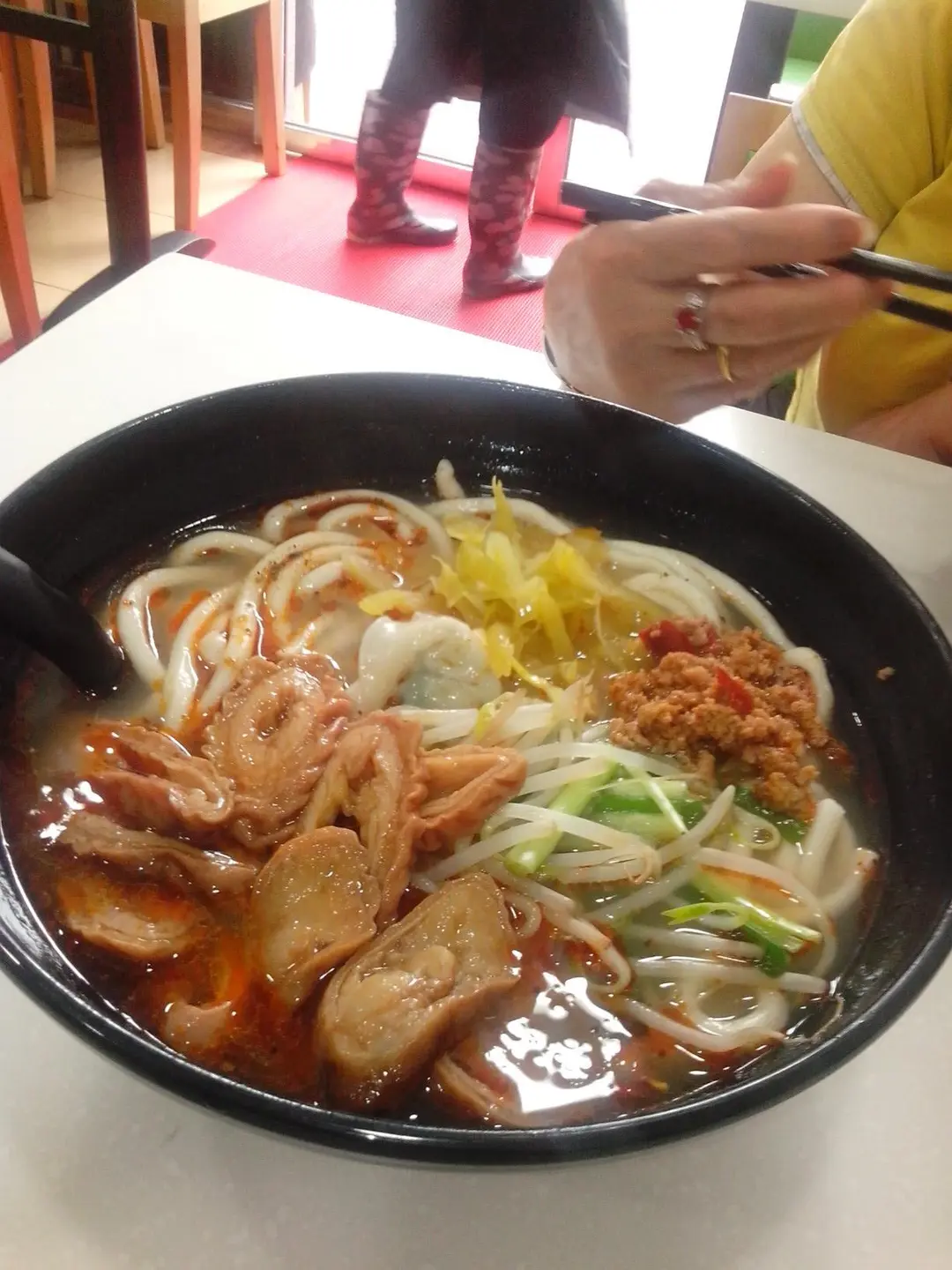 麻辣豬腸水餃湯麫