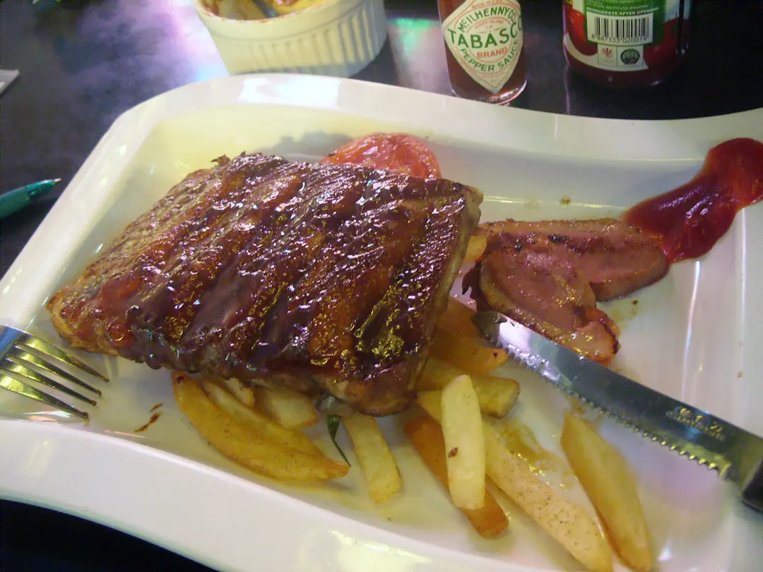 秘製醬燒豬仔骨配燒鴨胸----即叫即燒,燒烤醬帶點酸酸甜甜, 令人惹味