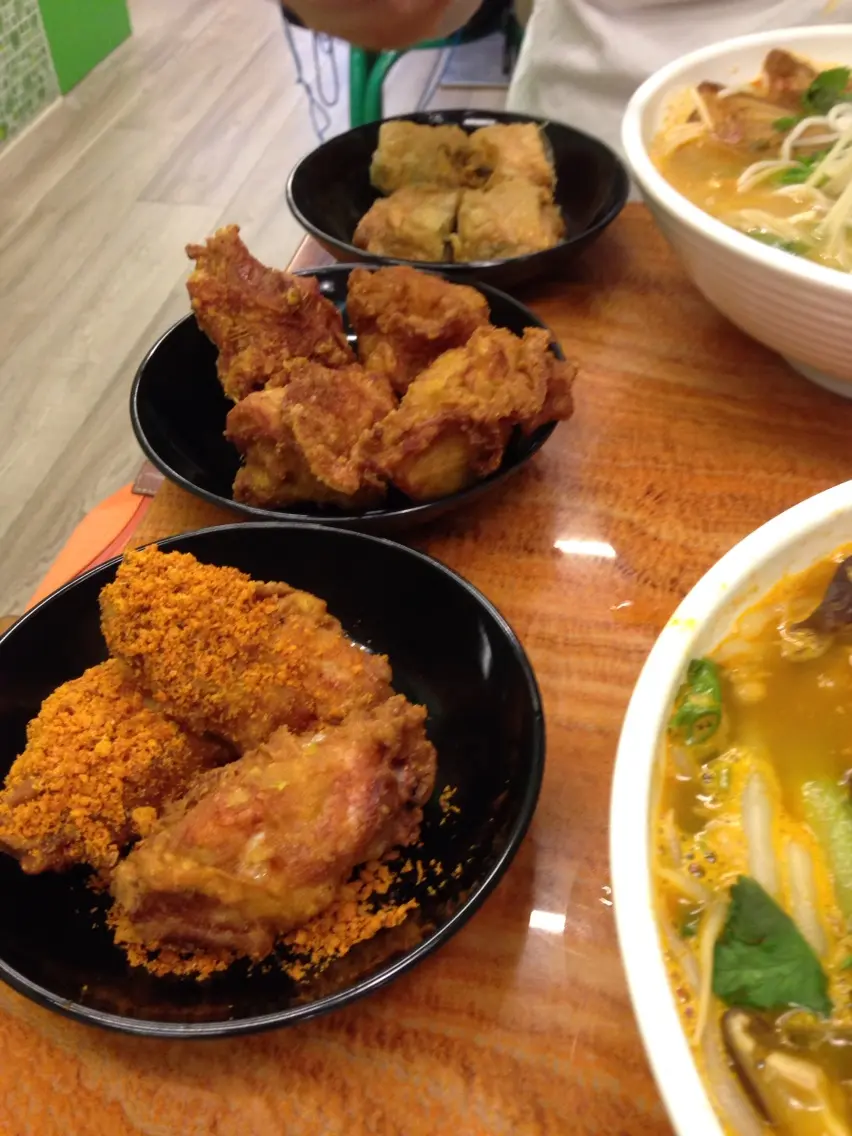 椒鹽雞翼,炸雞球同野菌腐皮卷