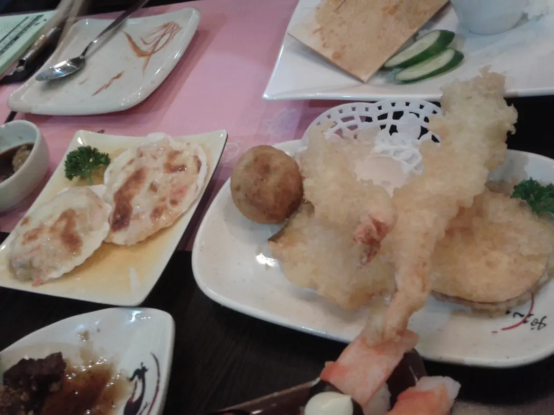 芝士焗帆立貝 、 南瓜天婦羅 、 大蝦天婦羅 & 和風八爪魚丸
