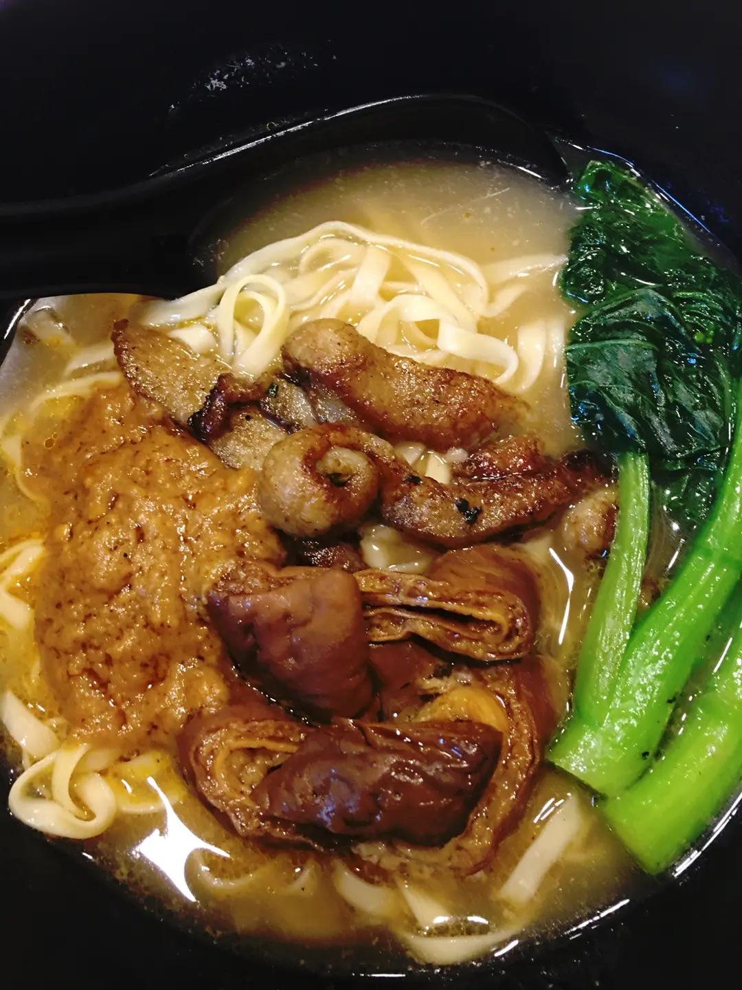 泰式豬頸肉,滷水豬大腸,菜芯三餸麵