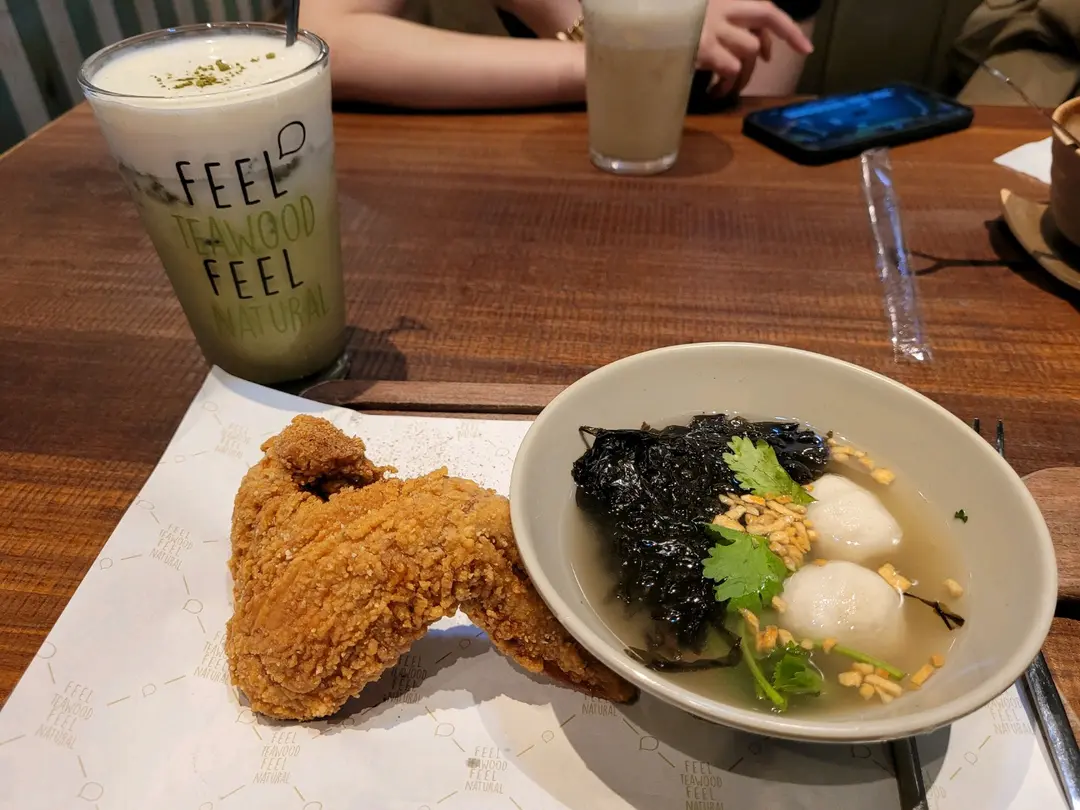 炸雞翼配紫菜湯魚丸