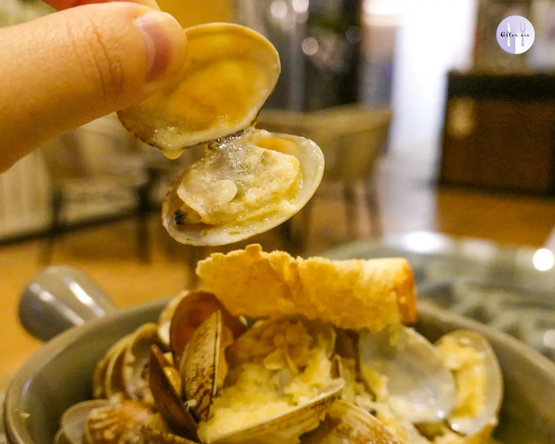 蒜蓉牛油酒煮蜆配法包