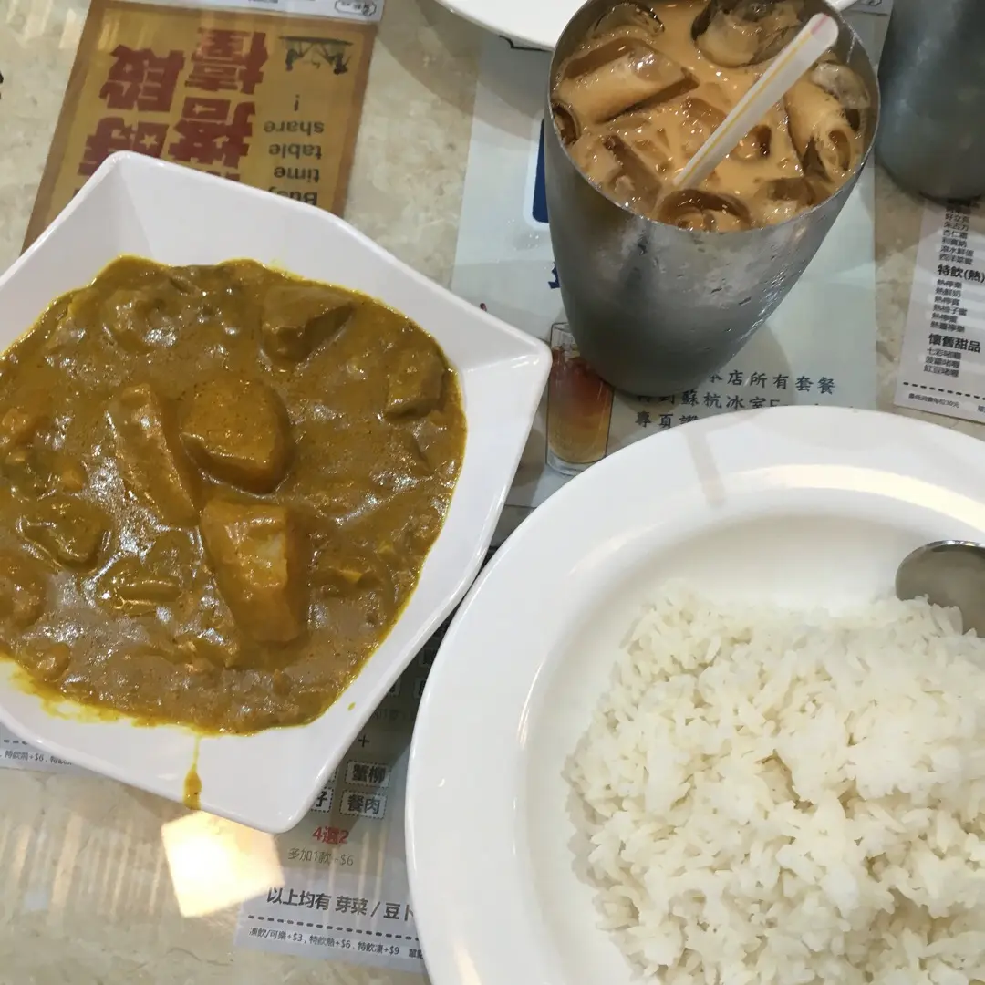 咖喱牛腩飯    凍奶茶