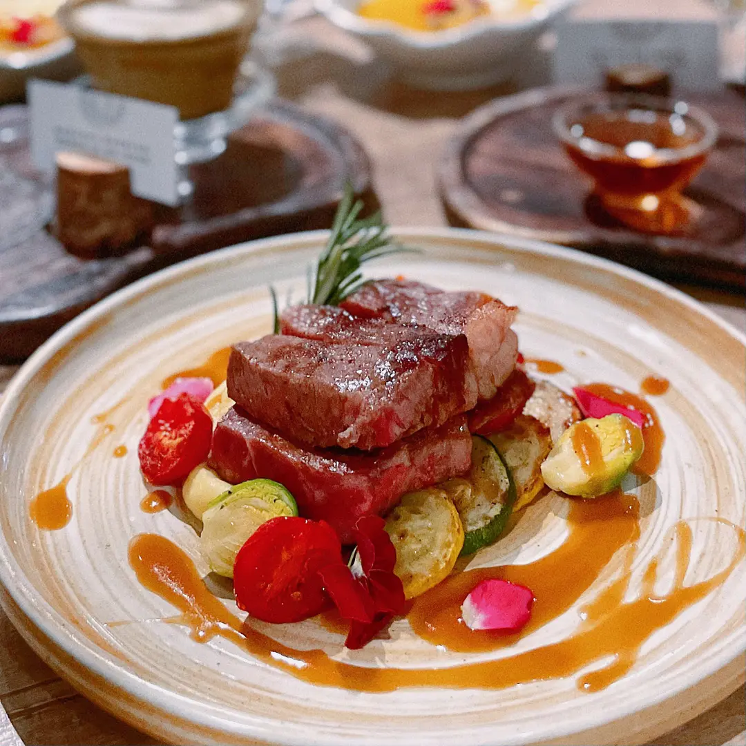 燒汁西冷扒薯蓉寶塔菜