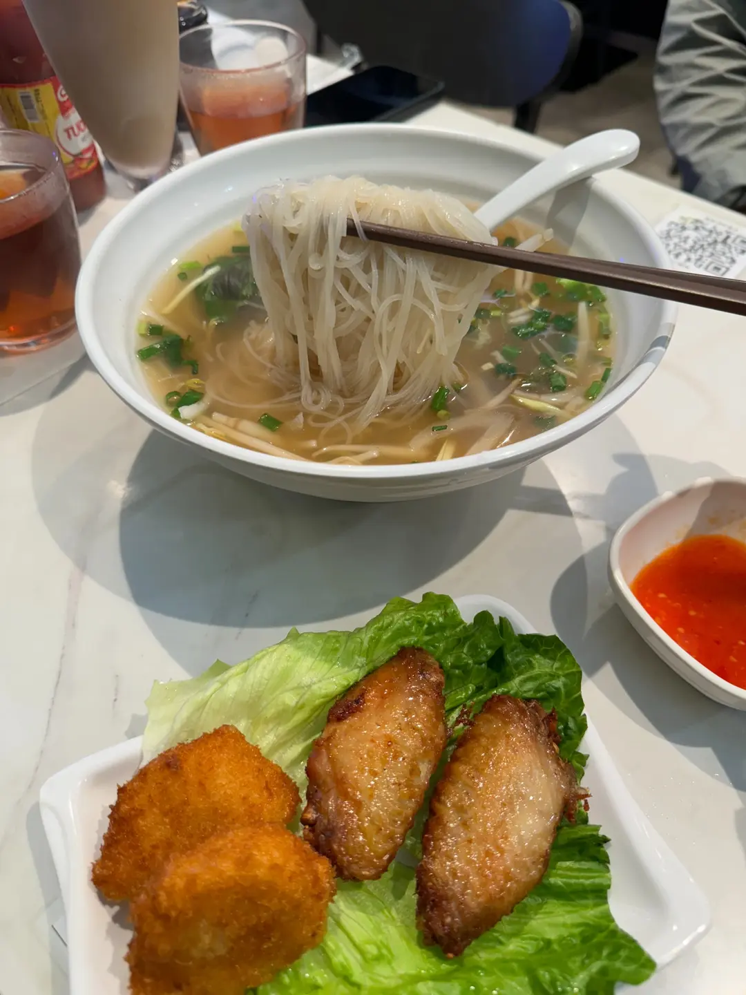 香炸雙拼牛骨湯金邊粉 (雞翼+蝦餅)
