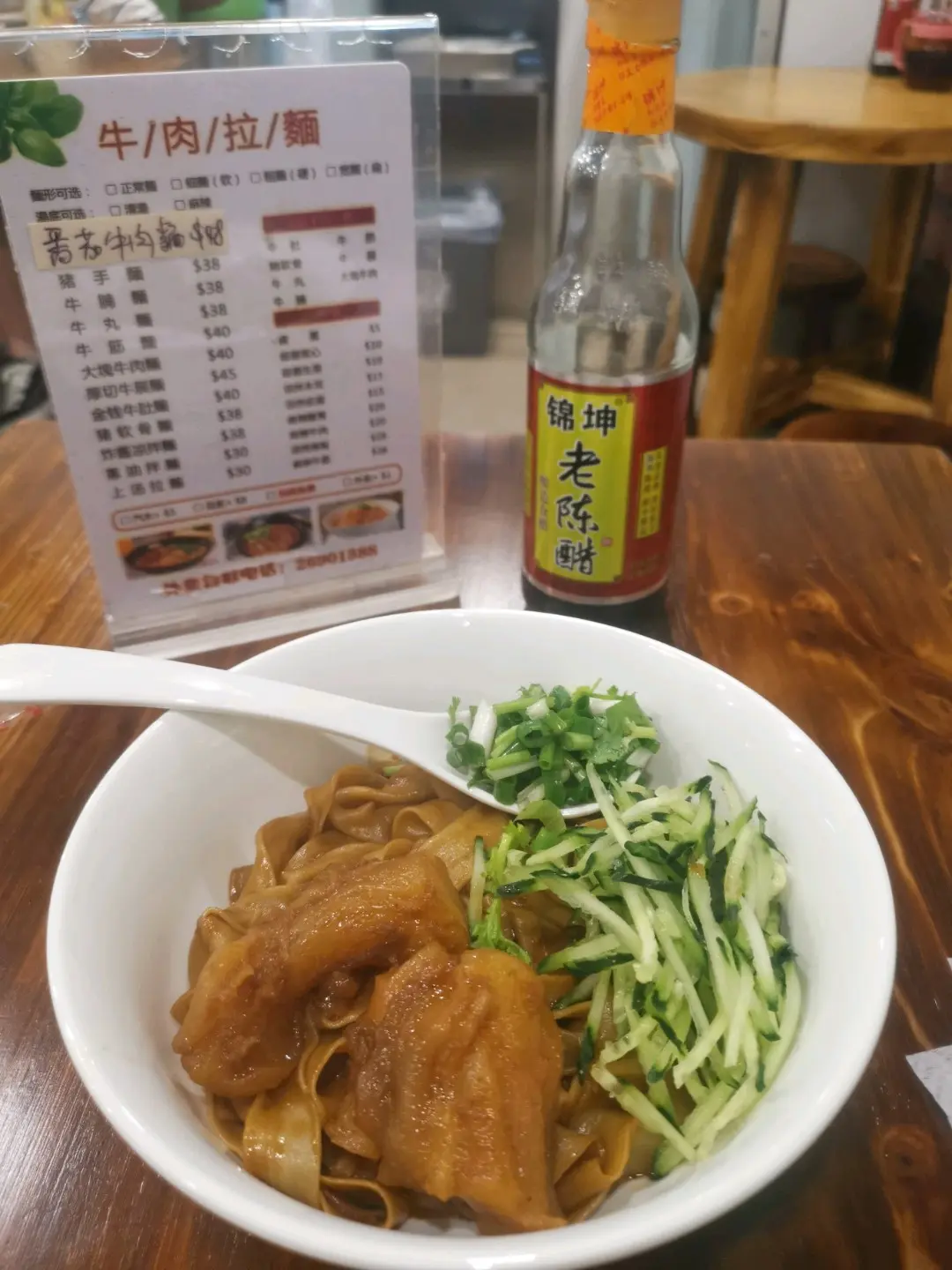 蔥油拌麵(寬麵) +牛筋