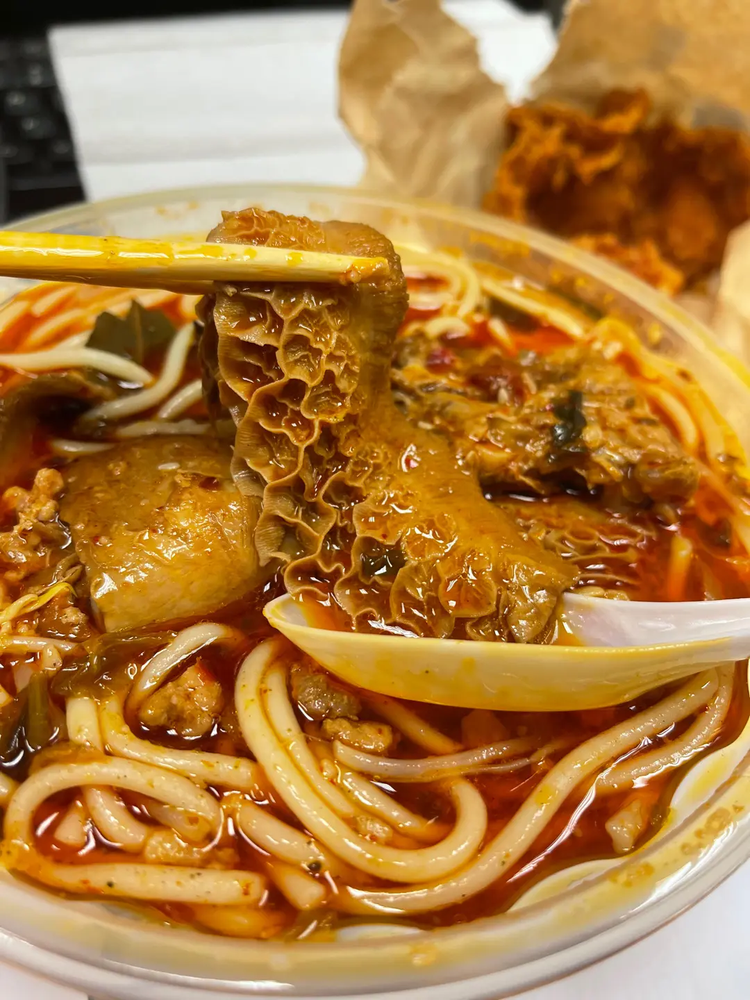 炸雞球配金錢肚麻酸辣少辣米線
