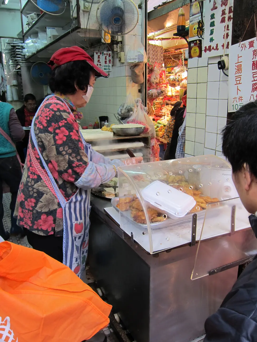 門的另一邊工作人員在煎豆腐和煎豆卜