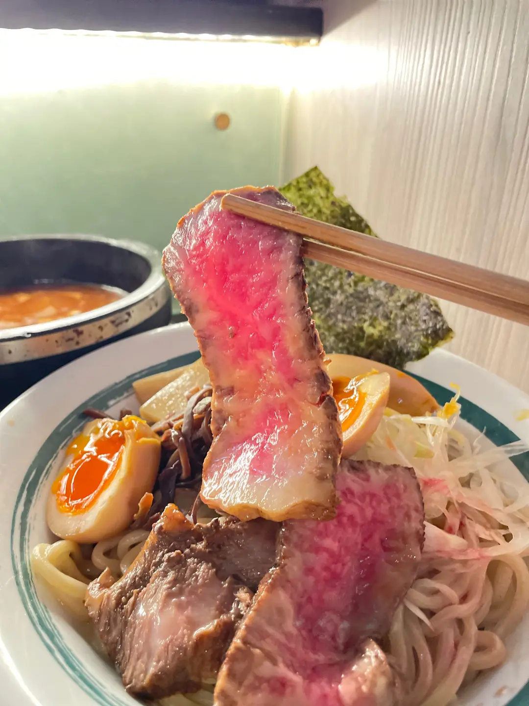 慢煮A4和牛叉燒沾麵配濃蝦湯