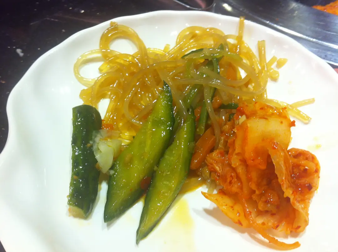 韓式炒粉絲, 醃青瓜及泡菜