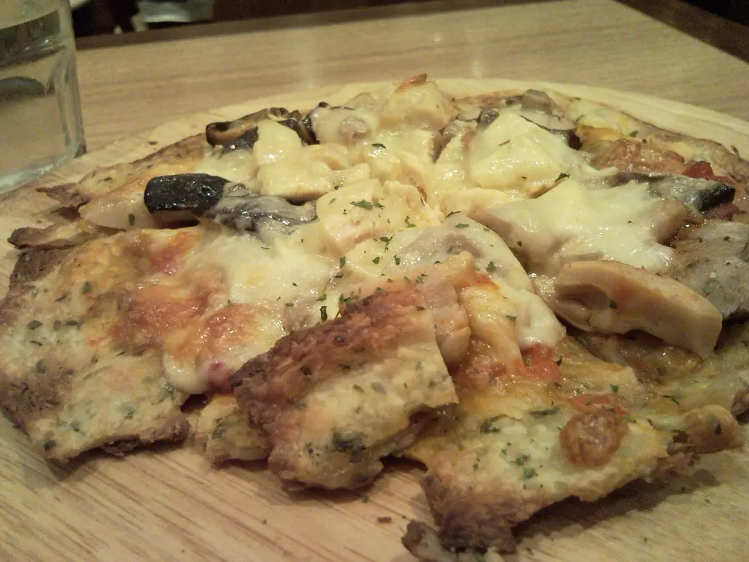 鮮雜菌烤雞粒葱油薄餅