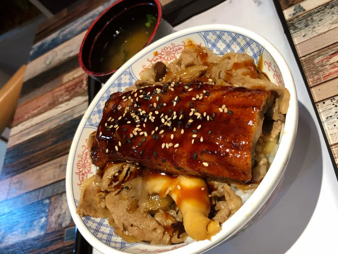 和風燒牛肉拼鰻魚扒飯 🇯🇵🔥🥩🌊🐍  •  麵豉湯
