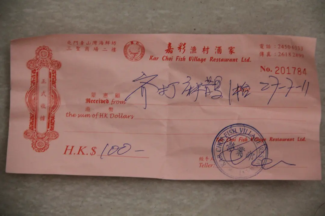 100元麻將費收據