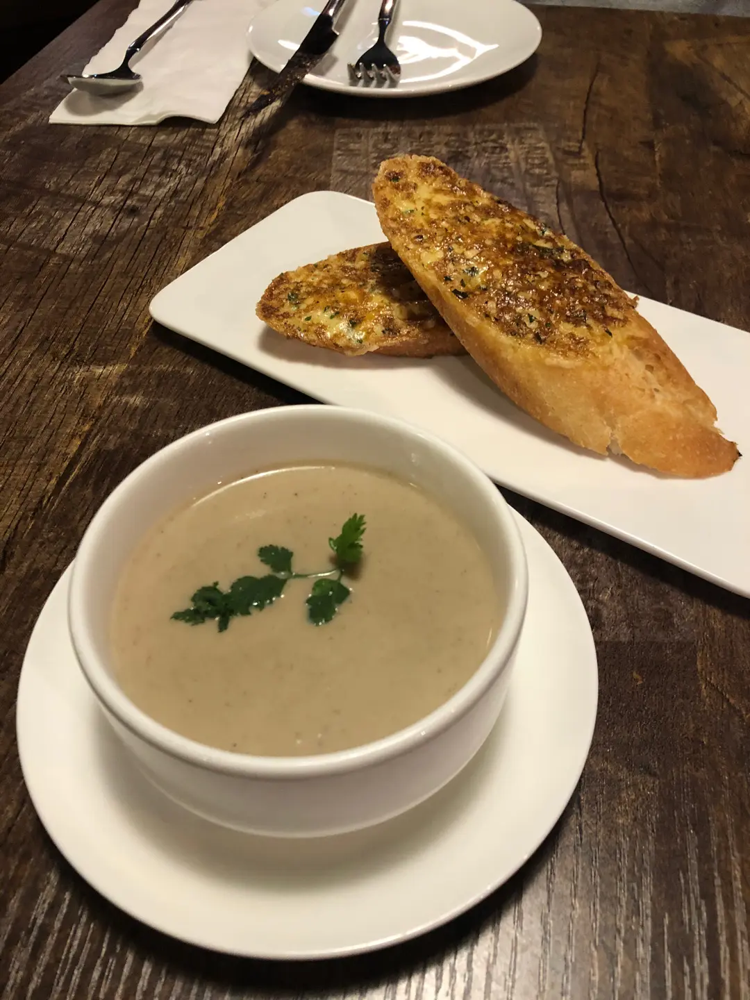 野菌湯及蒜蓉法包