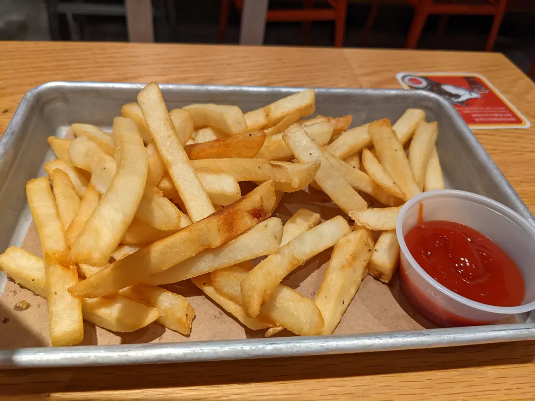 敢食脆蝦牛肉芝士漢堡配炸薯條